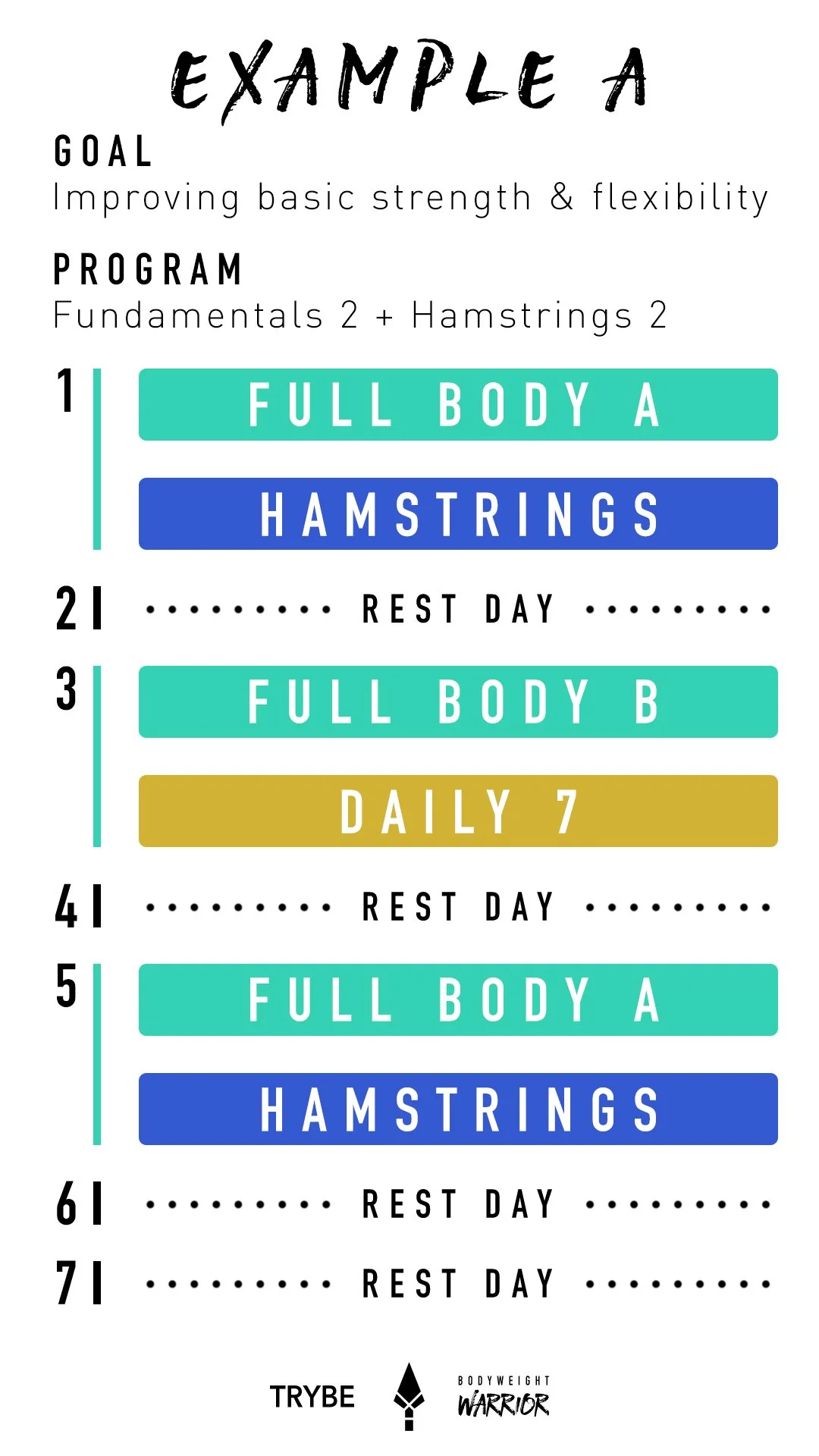 Flexibility - I recommend first focusing on developing hamstring flexibility to help open the hips. Achieving palms to floor pike is a great one to tick off. Daily Work & Upper Body are independent of this requirement and can be performed at any level.