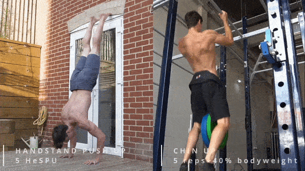 1) 5 X CHEST-TO-WALL HANDSTAND PUSHUPS